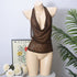 Shiny Deep V Neck Solid Color Vest Fashion Halter Top For Women