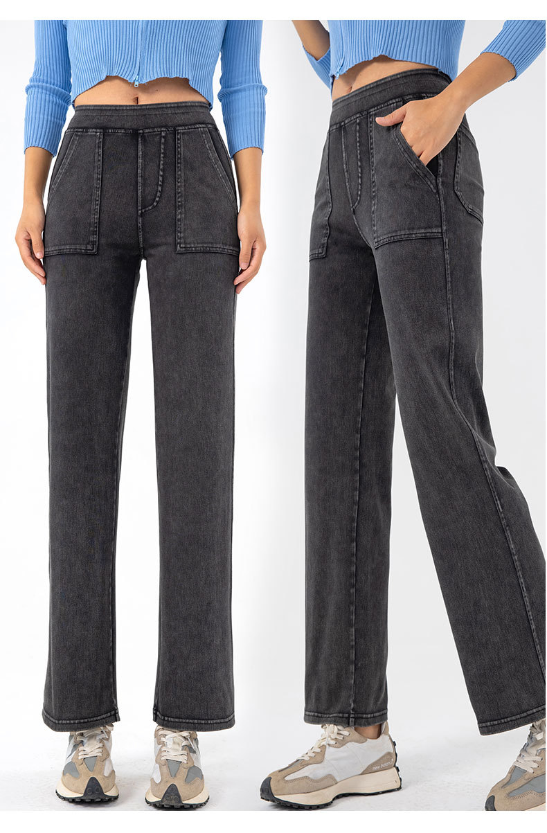 Cargo Jeans Women's Retro High Waist Straight Wide Leg
