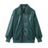 Loose Fashion Lapel Zip-up Jacket Cool Long Sleeve Zipper Closure Moto Biker Leather Jacket Womens Clothing