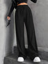New Women's Elastic Waist Pinstripe Road Straight Wide Leg